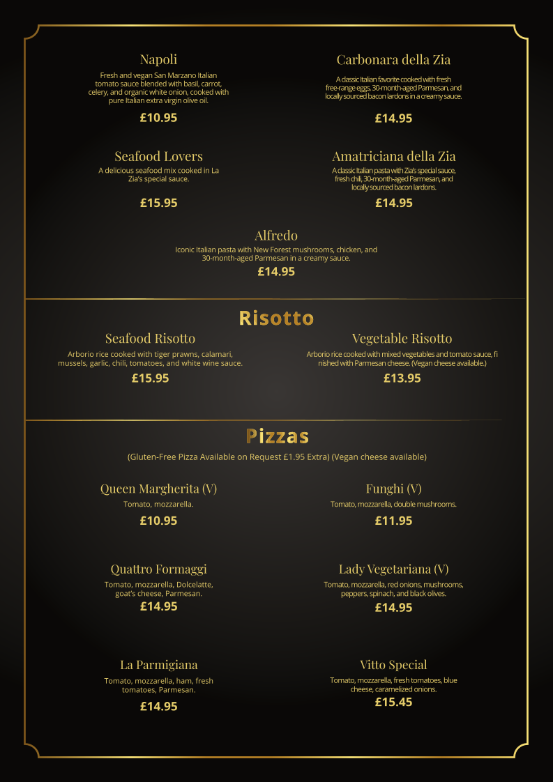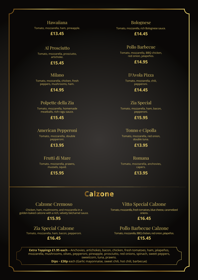 The Zia Pizza Westbury Menu features a wide selection of traditional and contemporary pizzas, ensuring that every customer can find something they’ll enjoy. From classic Margherita to more adventurous options like the BBQ chicken and spicy pepperoni, Zia Pizza's creations cater to diverse tastes. They also offer options for those with dietary restrictions, including gluten-free crusts and vegan cheese, which makes it an inclusive dining option.